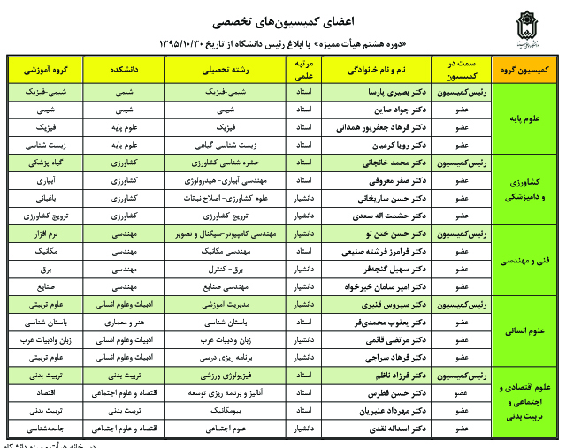 اعضای دوره هشتم هیات ممیزه: